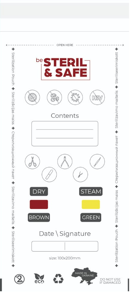 be STERIL&SAFE Karstā gaisa sterilizācijas maisiņi 100x200mm caurspīdīgi ar indikatoru 100gab.