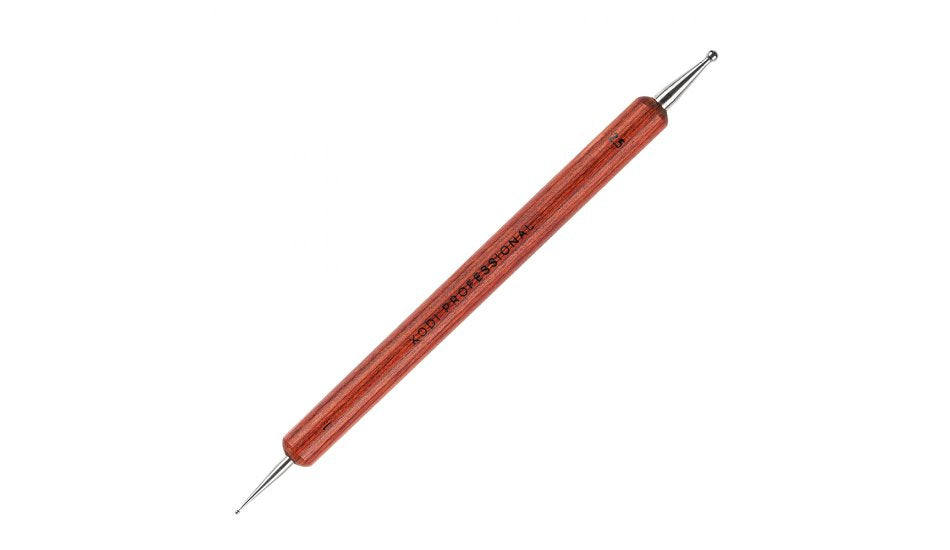 Dots nagu noformēšanai 2,5 mm un 1 mm KODI PROFESSIONAL ir profesionāls rīks, kas paredzēts monogrammu, punktu, komatu zīmēšanai un līniju locīšanas . Puse ar mazāku diametru (1 mm) rada plānākus, filigrānus raksta elementus, pusi ar lielāku darba virsmas diametru (2,5 mm) var izmantot, lai izveidotu tilpuma gleznu ar modelēšanas imitāciju uz gēla-lakas pārklājuma.