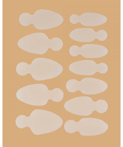 Komplektā ietilpst 12 dažāda izmēra gabaliņi, lai atvieglotu izvēli, strādājot ar dažādām nagu plāksnēm. Pašas formas ir izgatavotas no izturīga, blīva, bet tajā pašā laikā elastīga un lokana caurspīdīga silikona, kas kalpos ilgu laiku, ja ievērosiet trafaretu apstrādes pamattehnoloģiju.