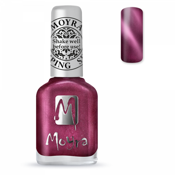 Moyra Stamping Nail Polish Cat Eye ir īpaši pigmentēta un ātri žūstoša nagu laka, kas radīta perfektiem stempinga dizainiem ar burvīgu kaķacs efektu. Magnētiskās daļiņas lakā veido dziļu un noslēpumainu spīdumu, piešķirot nagiem satriecošu 3D efektu.