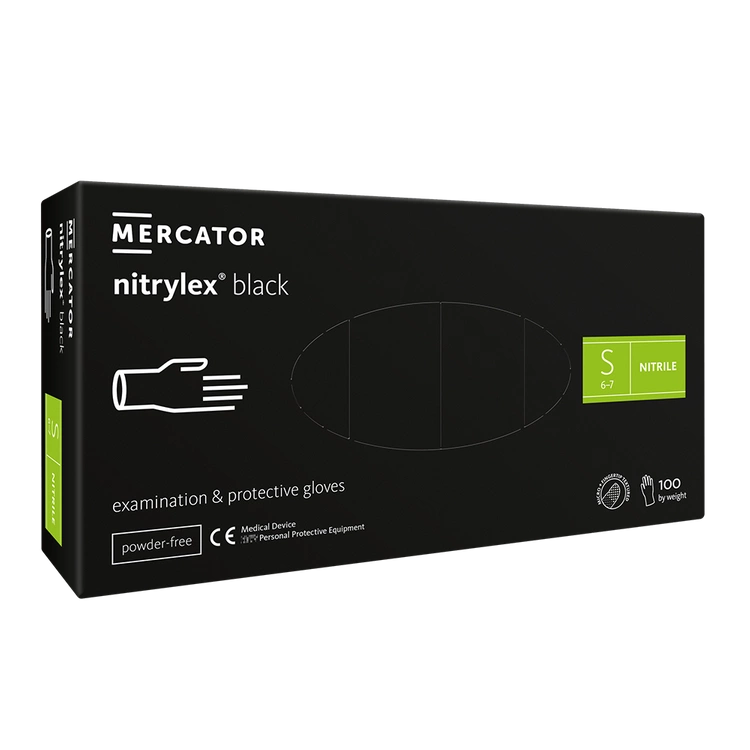 Nitrylex PF Vienreizlietojamie nitrila cimdi, bez pūdera S Melnie, 100 gab. (Polija)
