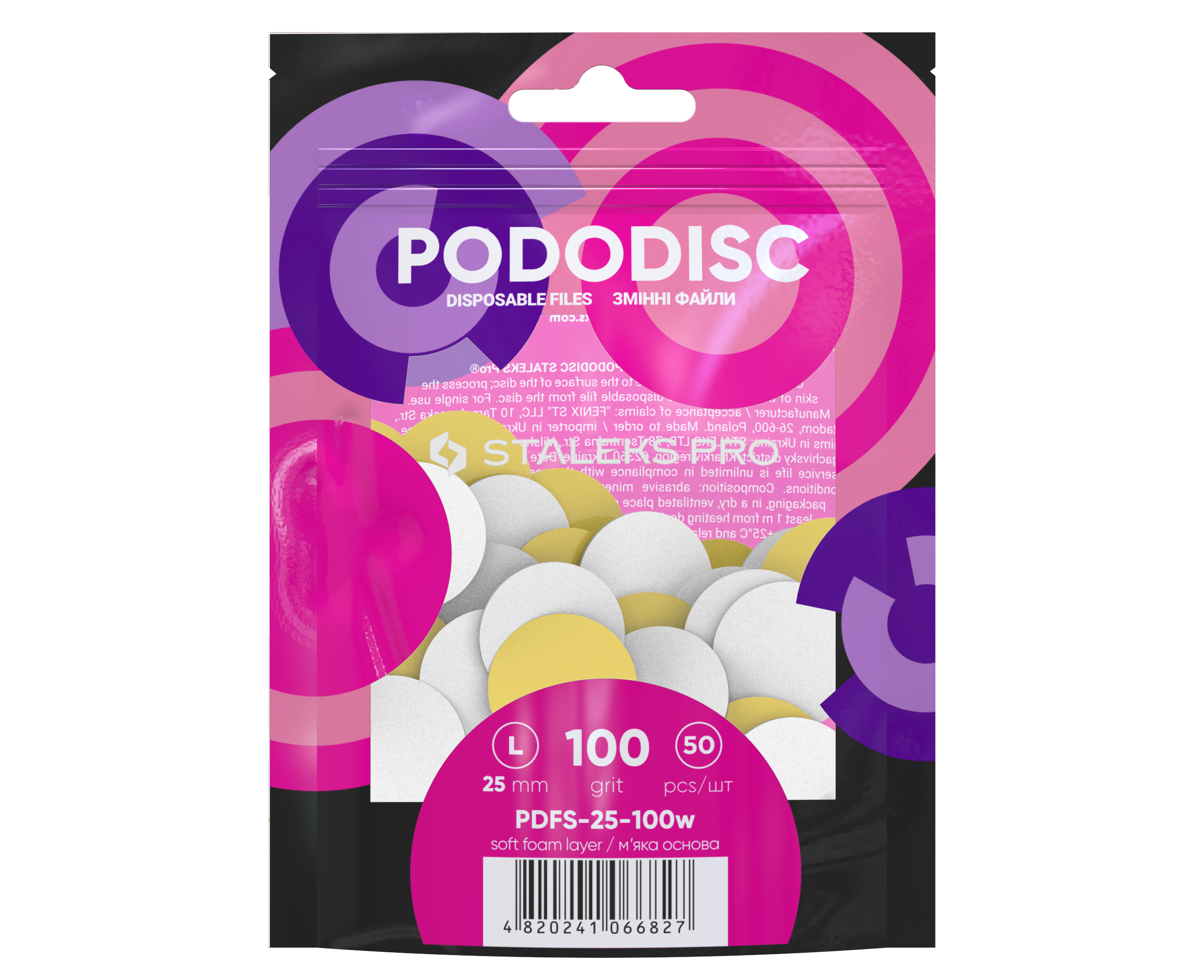 STALEKS Maināmi faili uz mīksta pamatā pedikīra diskam L 100 grit, balts (50 gb.)[PDFS-25-100W]