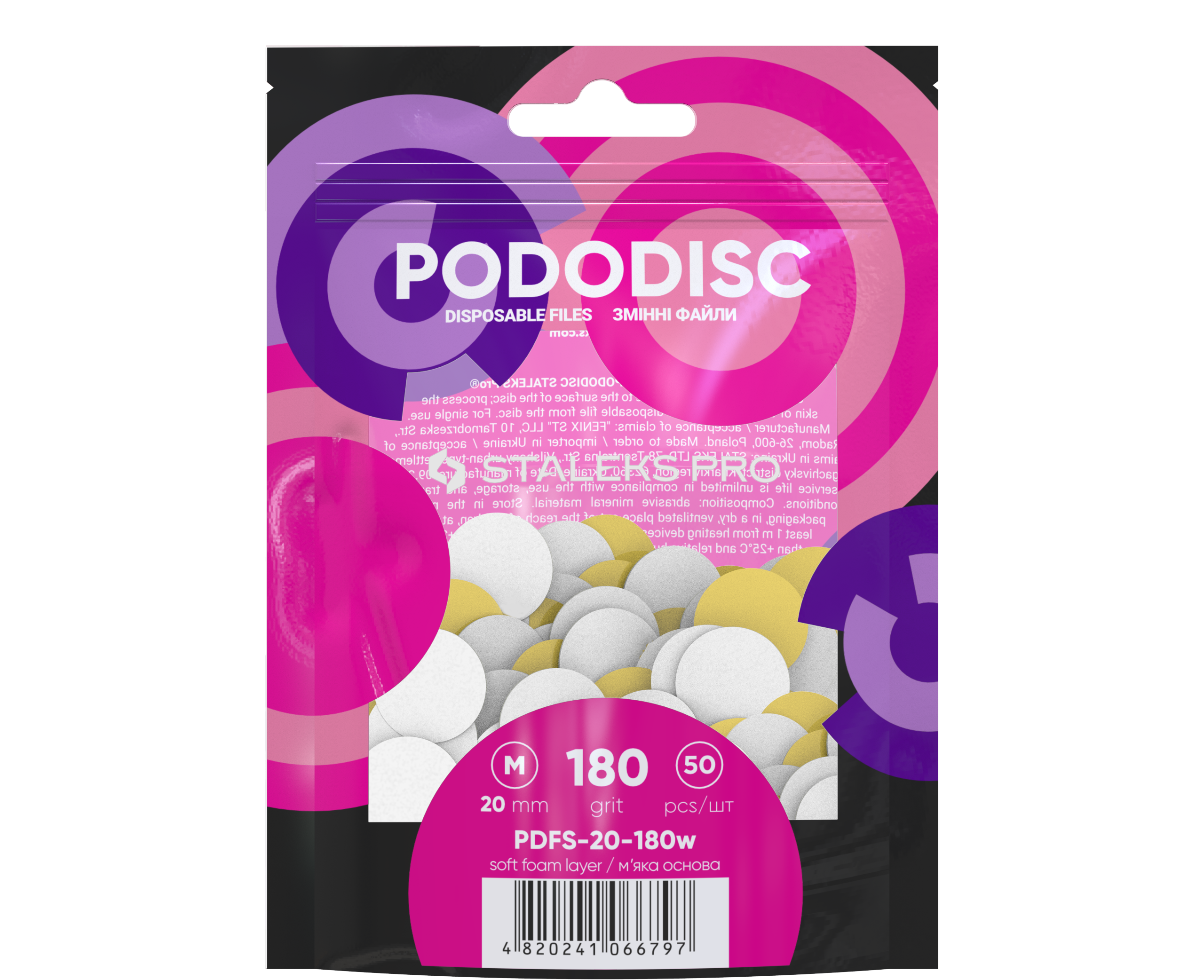 STALEKS Maināmi faili uz mīksta pamatā pedikīra diskam M 180 grit, balts (50 gb.)[PDFS-20-180W]