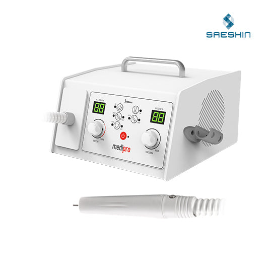 MediPro ierīci Dienvidkorejā ražo viens no pasaulē vadošajiem zobārstniecības un manikīra-pedikīra mikromotoru ierīču ražotājiem Saeshin, kas pazīstams un slavens visā pasaulē ar zīmolu Strong, un nedaudz mazāk pazīstams – Brillian un Traus. Augstākā kvalitāte, uzmanība detaļām un niansēm, kā arī mūsdienīgs dizains ir Saeshin raksturīgās iezīmes. Saeshin MediPro ir pasaulslavenā Saeshin Medi Power pedikīra aparāta “lielais brālis”. Un, lai gan šie divi modeļi pēc izskata ir gandrīz identiski, Saeshin Medi Pro “pildījums” ir atšķirīgs un moderns. Saeshin MediPro maksimālais ātrums ir 40 000 apgr./min, kas ir par 10 000 apgr./min vairāk nekā Saeshin Medi Power, un griezes moments tiek palielināts par 2 N·cm. Šķiet, ka jaudas palielināšanai vajadzētu būt saistītai ar tās svaru, bet nē, jaunais rokturis ir par 10 g vieglāks – jo ir ieviesta bezsuku motors, kas ļāva samazināt gan svaru, gan arī skaņu.